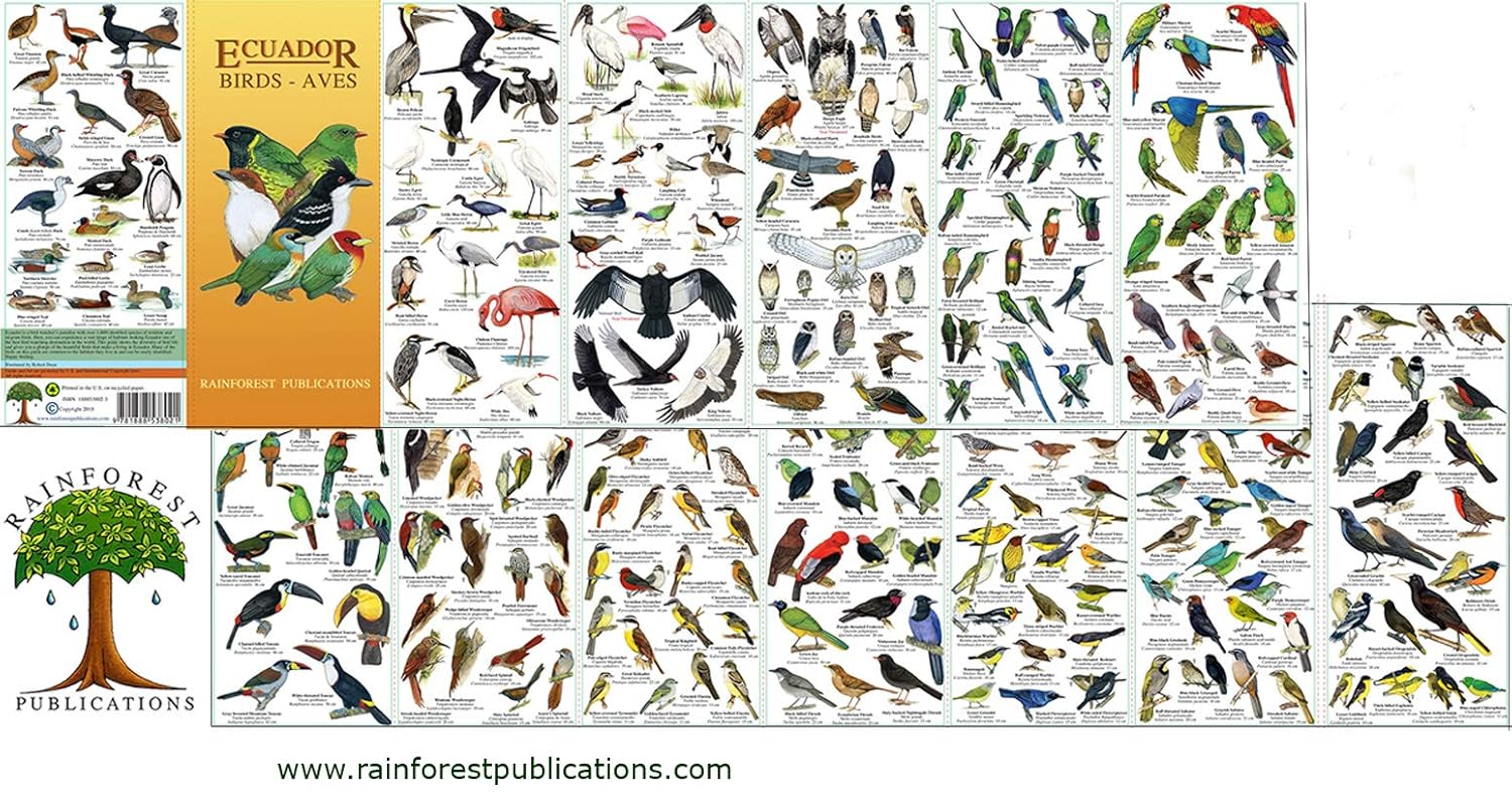 Ecuador Birds fold out pocket field guide (English and Spanish Edition)